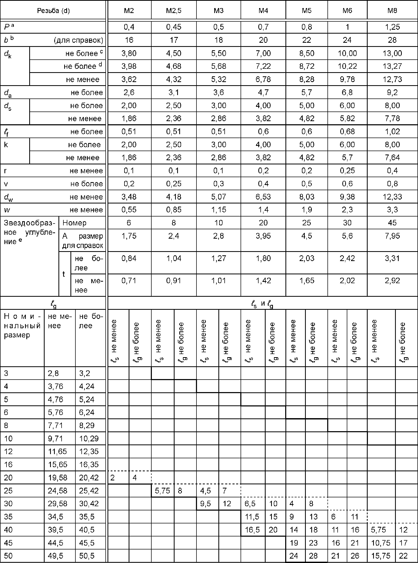 Резьба d | М2 | М2,5 | М3 | М4 | М5 | М6 | М8 | М10 | М12 | (М14) | М16 | (М18) | М20 |