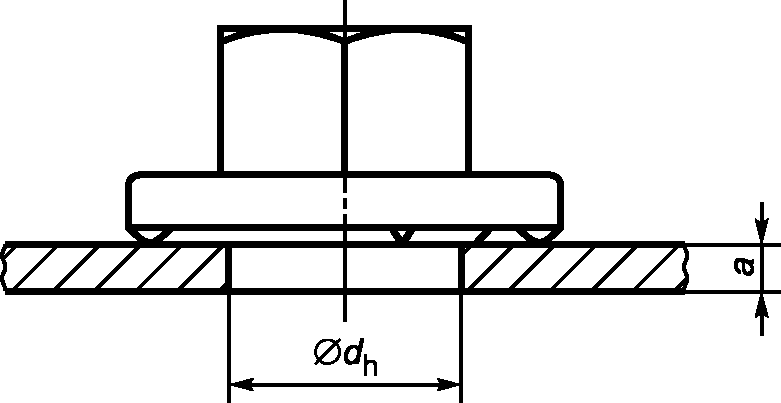 | Толщина листа a | Диаметр отверстия dh H11 |