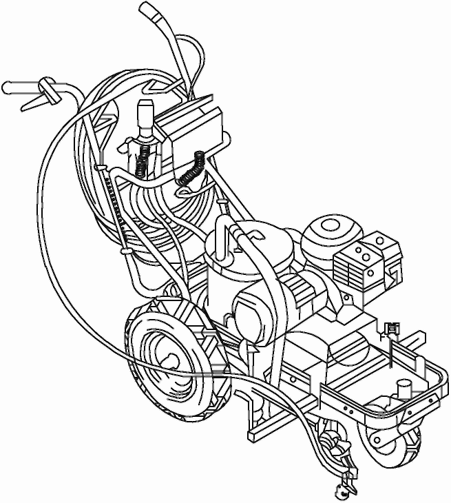2.6.3 Машина для нанесения дорожной разметки | Самоходная или управляемая идущим рядом оператором машина для нанесения дорожных разметок на дорожное покрытие. Примечание 1 - Нанесение светоотражающей краски обычно производят пульверизатором при движении машины в направлении потока, движущегося по полосе. Примечание 2 - Также машина предназначена для нанесения линий из структурных материалов, например микростеклошариков | ![]() Рисунок 37 - Машина для нанесения дорожной разметки |