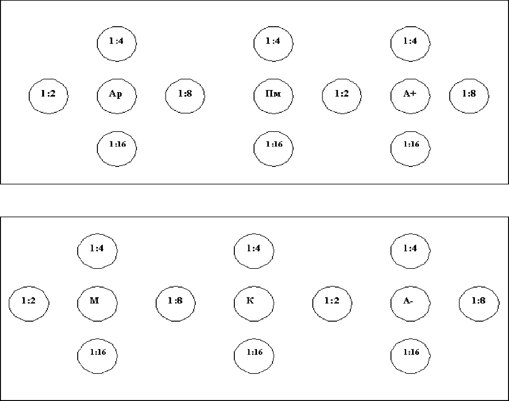 Возможно применение других схем внесения материала, но при этом обязательно использование положительного и отрицательного антигенов.