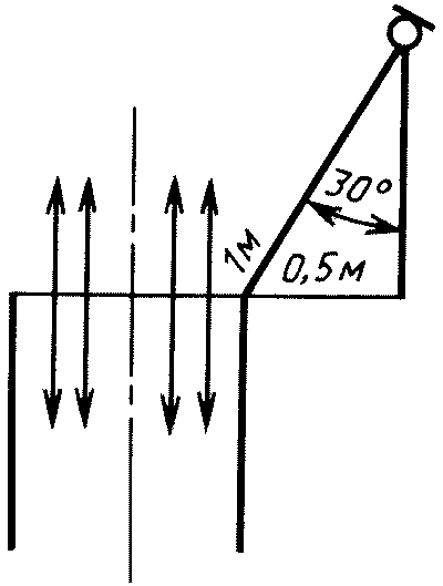 Для определения шума всасывания и выхлопа главного двигателя, а также установки вентиляции и кондиционирования воздуха, рекомендуются следующие точки расположения микрофона: на прямой, образующей угол 30° с направлением потока; на расстоянии 1 м от края всасывающего или выхлопного патрубка и как можно дальше от отражающих поверхностей (черт. 1 и