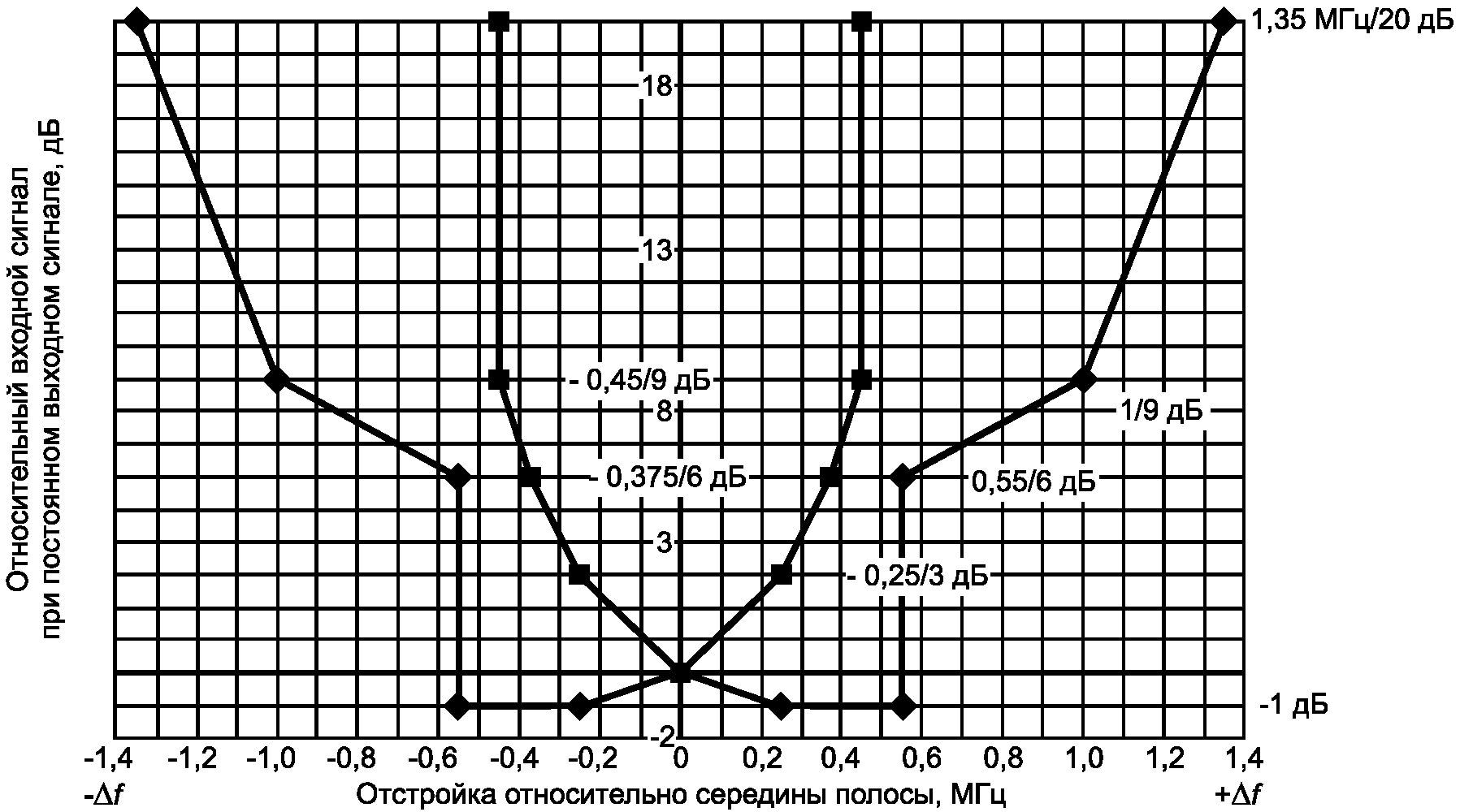 ): Ширина полосы частот измерительного приемника (ИП), на границах которой значение характеристики его частотной избирательности равно заданному значению, дБ. Индекс "n" - заданное значение характеристики частотной избирательности.