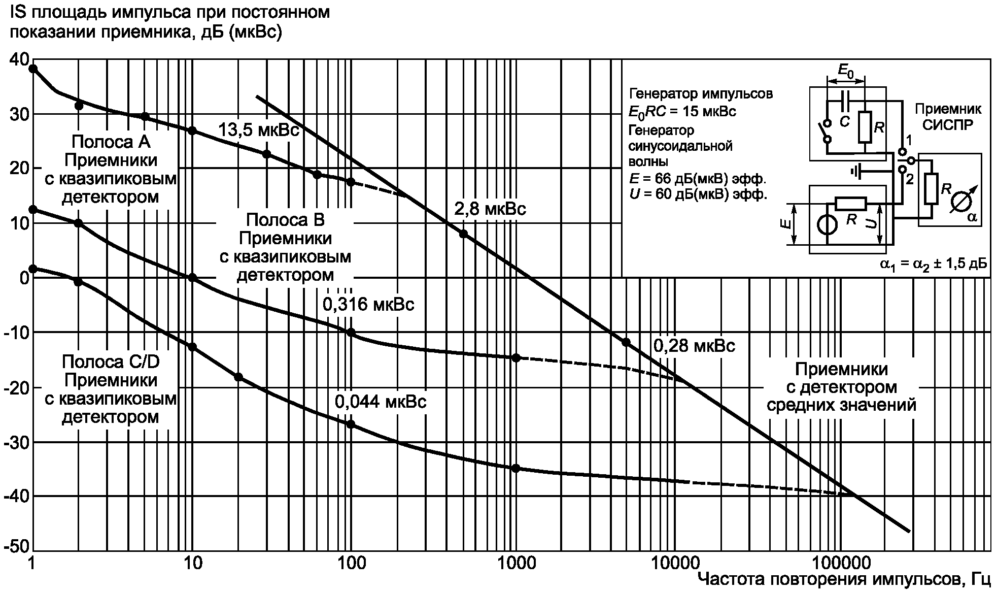 Требования настоящего стандарта должны выполняться на всех частотах и для всех уровней напряжения и тока ИРП в пределах диапазонов измерений СИСПР, установленных для измерительного оборудования.