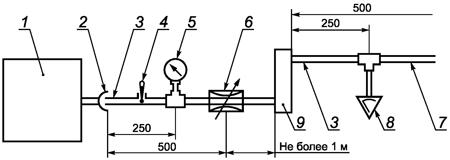 Собирают устройство, как показано на рисунке, с использованием трубки внутренним диаметром (6 +/- 1) мм.