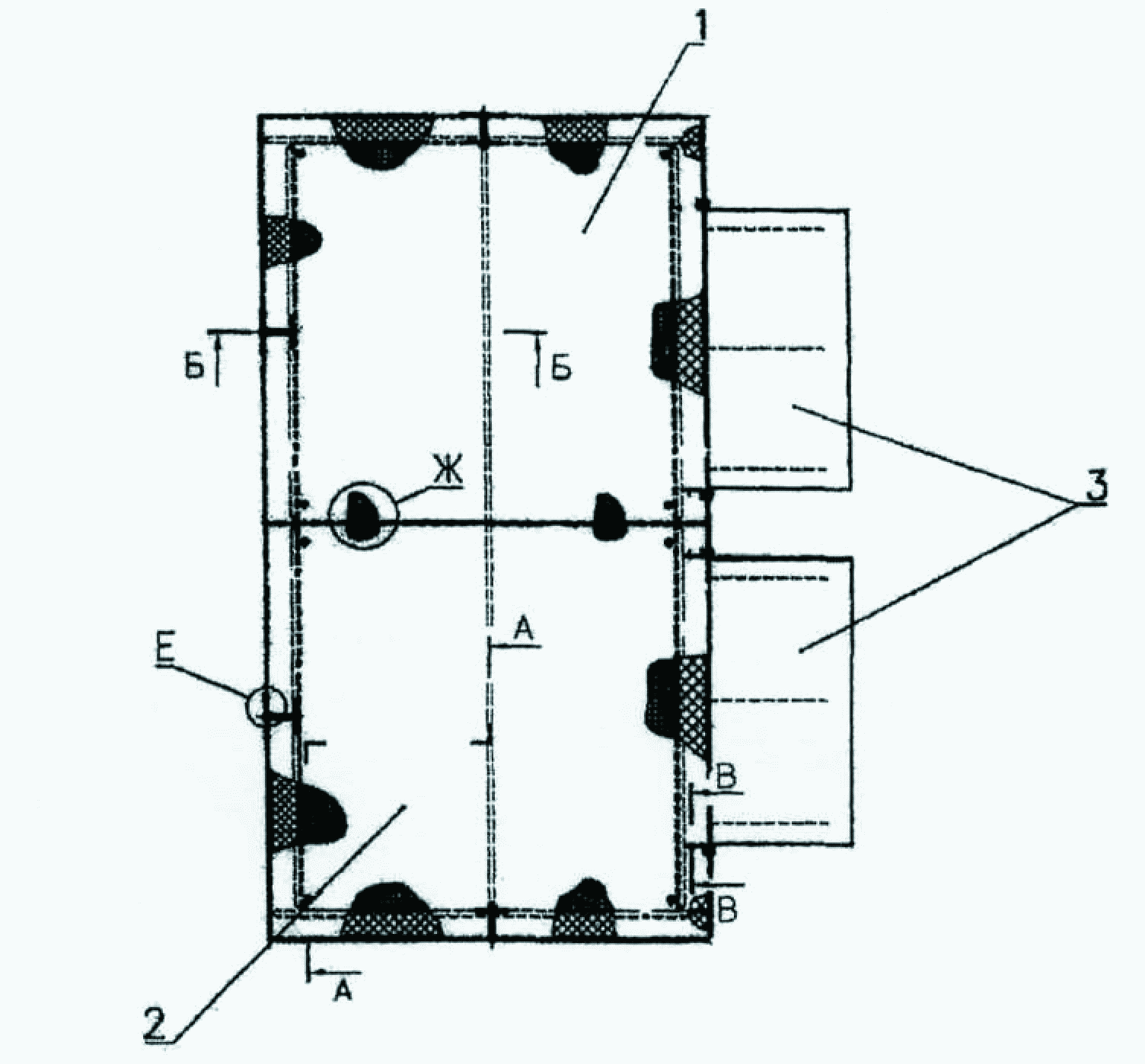 1 - основание правое; 2 - основание левое; 3 - трапы;