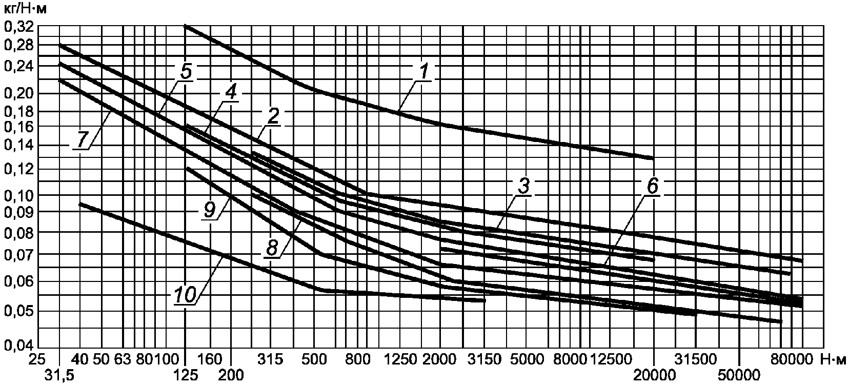 - червячно-цилиндрические и цилиндрическо-червячные с межосевым расстоянием тихоходной ступени aw <= 500 мм;