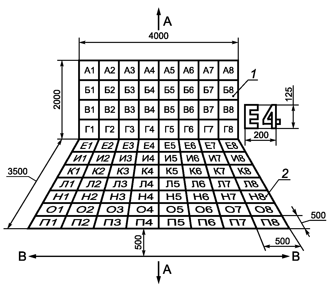 Каждая таблица представляет собой светлую плоскость, разграфленную на квадраты 500 x 500 мм. В центре каждого квадрата нанесен буквенно-цифровой знак.