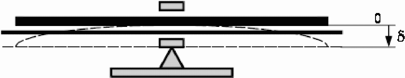 3.8 деформация изгиба: Значение прогиба свешивающихся концов сформированного модельного образца гипсовой повязки прямоугольной формы относительно горизонтальной плоскости.