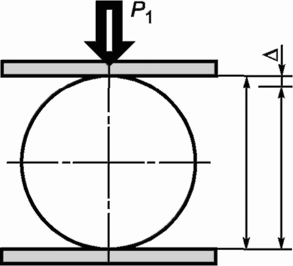 Определение остаточной деформации модельных образцов гипсовых повязок цилиндрической формы под действием неразрушающей тестовой нагрузки при сжатии в диаметральном направлении (рисунок 2) через заданные промежутки времени.