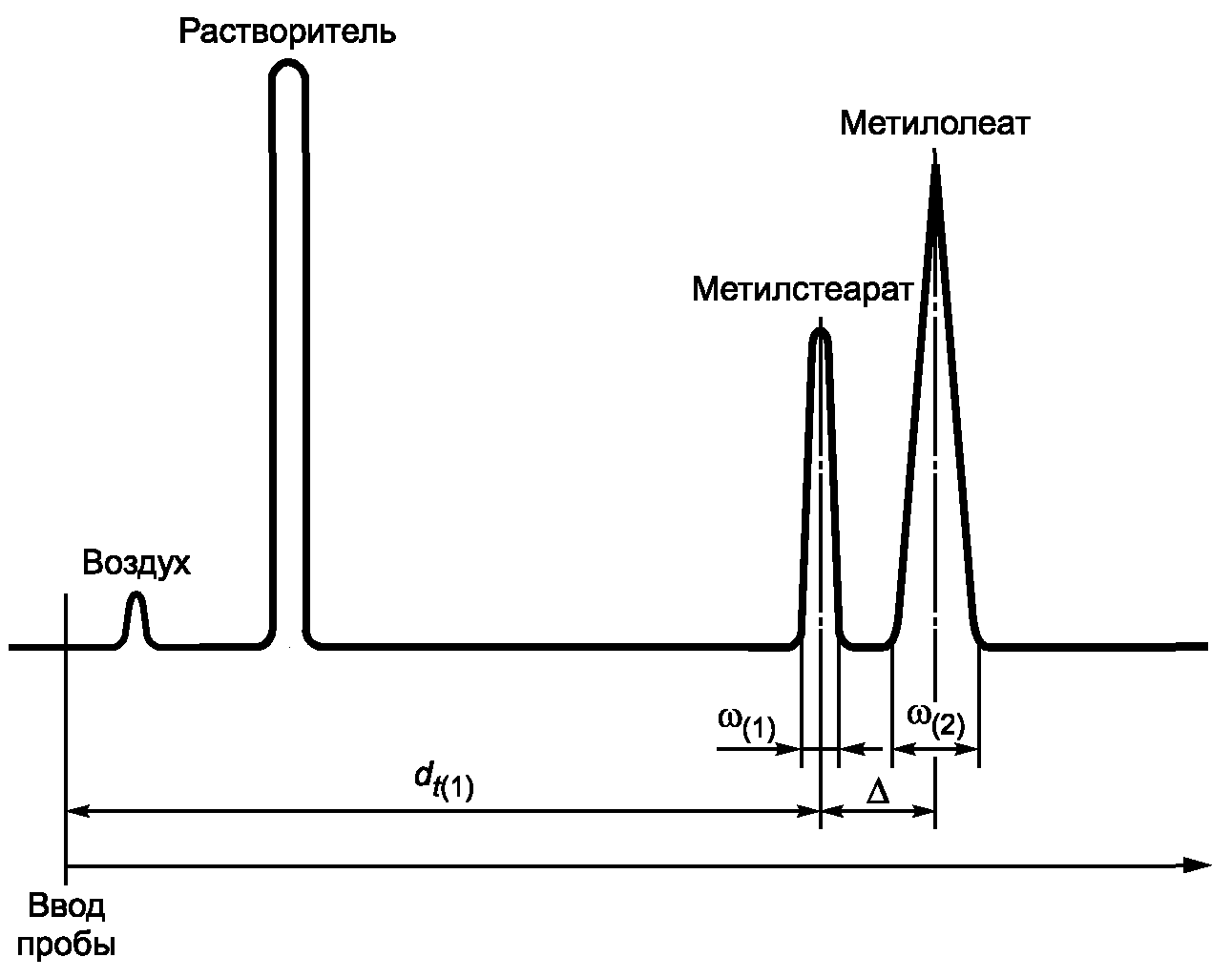 А.1.3. Определение количества теоретических тарелок (эффективности) и разрешающей способности (см. рисунок А.1)