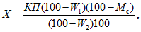 7.7.1 Расчет условной крахмалистости X, %, выполняют по формуле