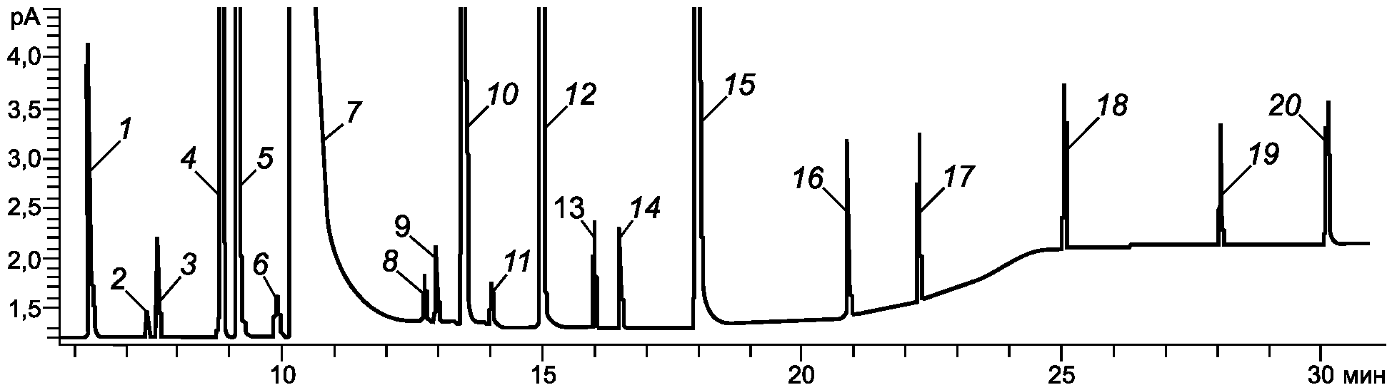 А.4.1. Градуировочная смесь должна содержать следующие вещества: альдегиды (уксусный альдегид, кротоновый альдегид), сложные эфиры (этилформиат, этилацетат, изобутилацетат, изоамилацетат, этиллактат, этилоктаноат, этилдеканоат, этиллаурат), компоненты сивушного масла (2-пропанол, 2-бутанол, 1-пропанол, изобутанол, 1-бутанол, изоамилол, 2-фенилэтанол), кетон (ацетон), метиловый спирт.