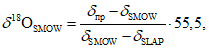 8.1 Расчет соотношения изотопов кислорода проводят с применением воды по SMOW и SLAP.