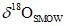- изотопный состав кислорода относительно международного стандарта SMOW, в промилле;