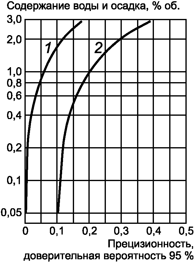 11.3.2 Метод дистилляции по ASTM D 95 (API MPMS, раздел 10.5) обладает несколько лучшей прецизионностью: повторяемость 0,08 по сравнению с 0,1 и воспроизводимость 0,11 по сравнению с 0,2. Указанные значения применимы при содержании воды от 0,1% до 1% включительно.