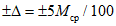 , значение относительной погрешности +/- 5 представлено в