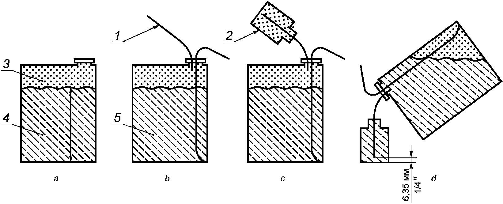 Можно использовать любой способ соединения воздушной и жидкостной камер, исключающей потери испытуемого продукта и влияние сжатия во время соединения и отсутствие утечки в условиях испытания.