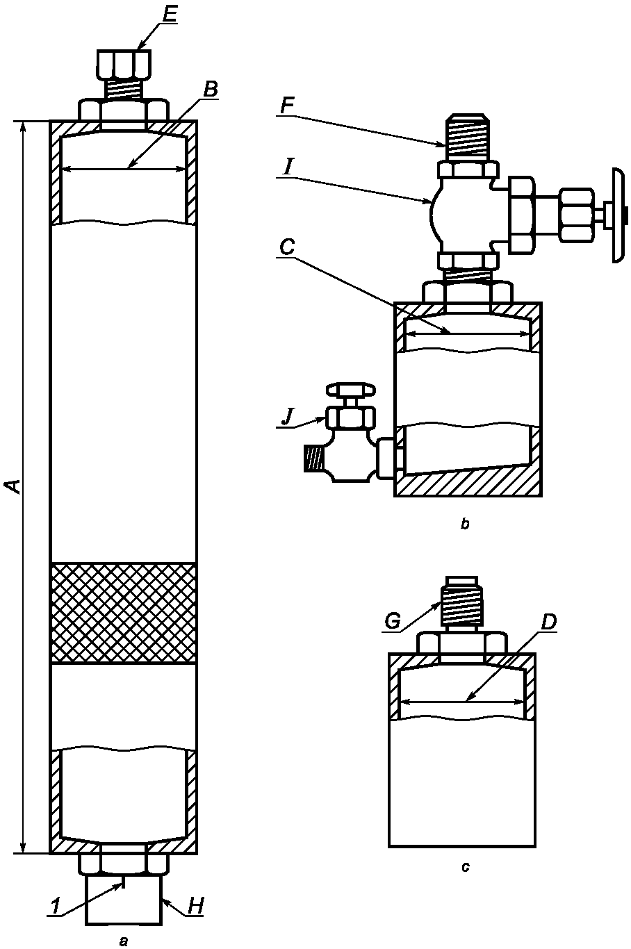 рисунке A1.1, представляет собой цилиндрический сосуд такого же внутреннего диаметра, как и воздушная камера, и таким объемом, чтобы соотношение объемов воздушной и жидкостной камер находилось в пределах 3,8 - 4,2 (см.