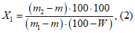 (100 - W) - массовая доля сухих веществ в глютене, %;