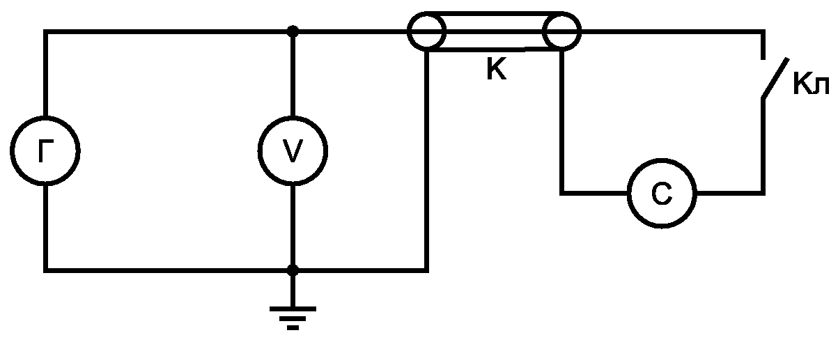 Г - генератор; V - вольтметр; К - кабель;