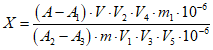 , мкг/е.о.п. или мкг/мм, вычисляют по формуле