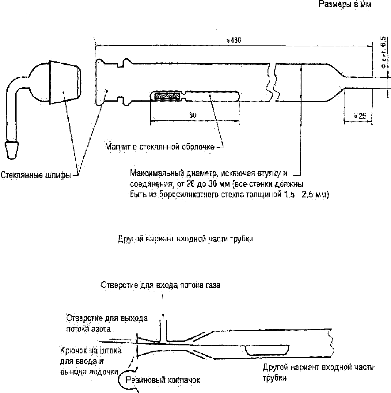 2. В качестве варианта изоляции от внешней среды можно использовать осушительную трубку с зауженным входным отверстием и стержень для введения лодочки. При этом стержень должен выниматься и входное отверстие трубки быстро, насколько это возможно, закрываться.