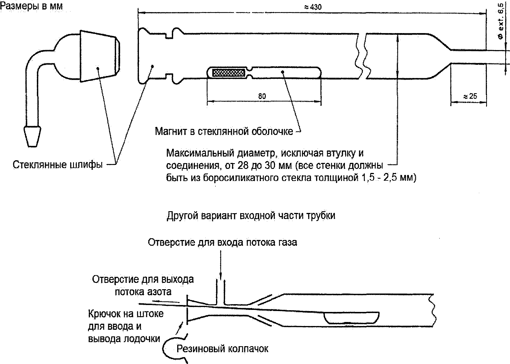 - лодочки для проб из инертного и стабильного материала, такого как стекло, коррозионно-стойкая сталь или фарфор (приблизительные размеры 100 x 20 x 10 мм).