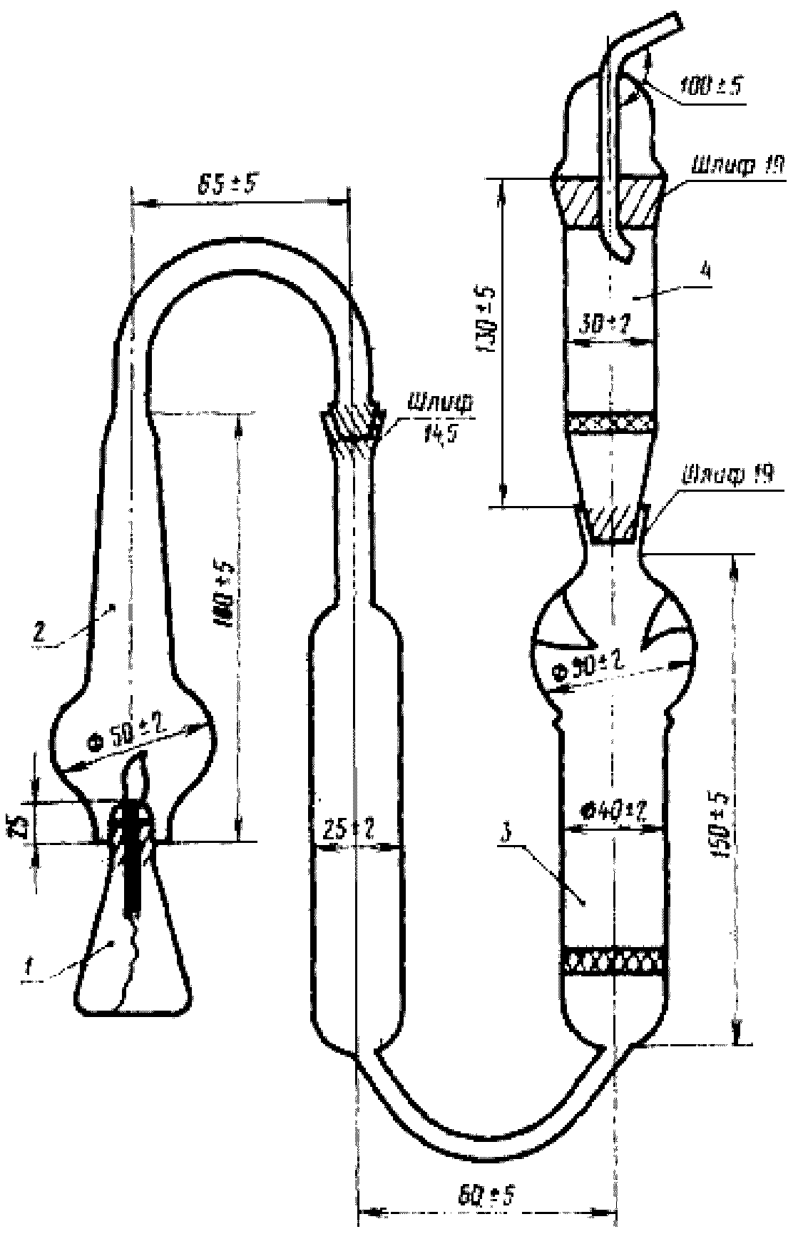 Обмывают поглотитель и брызгоулавливатель 3 - 4 см3 дистиллированной воды, сливая промывные воды в тот же цилиндр. Поглотительный раствор после сжигания должен быть прозрачным.