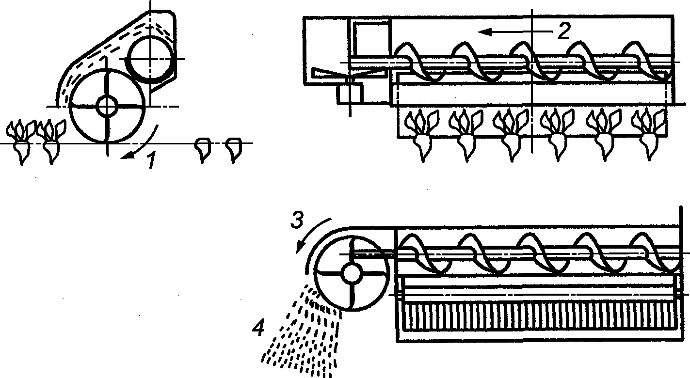 3 - извлеченный корнеплод; 4 - очищающие центрифуги