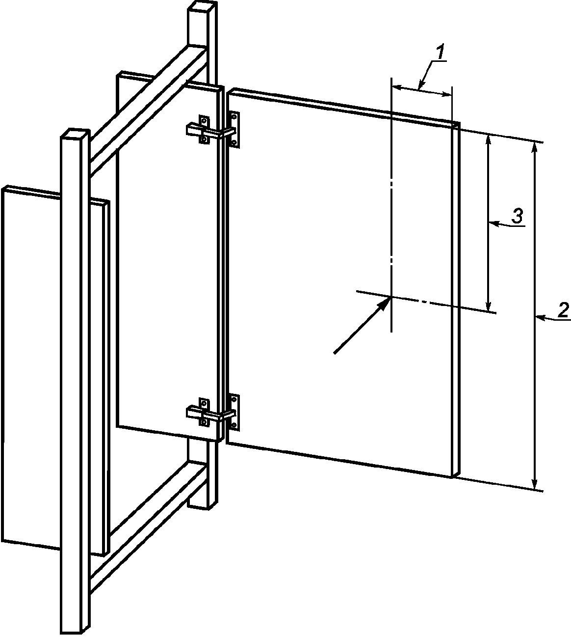1 - испытуемая дверь; 2 - высота двери; 3 - ширина двери;