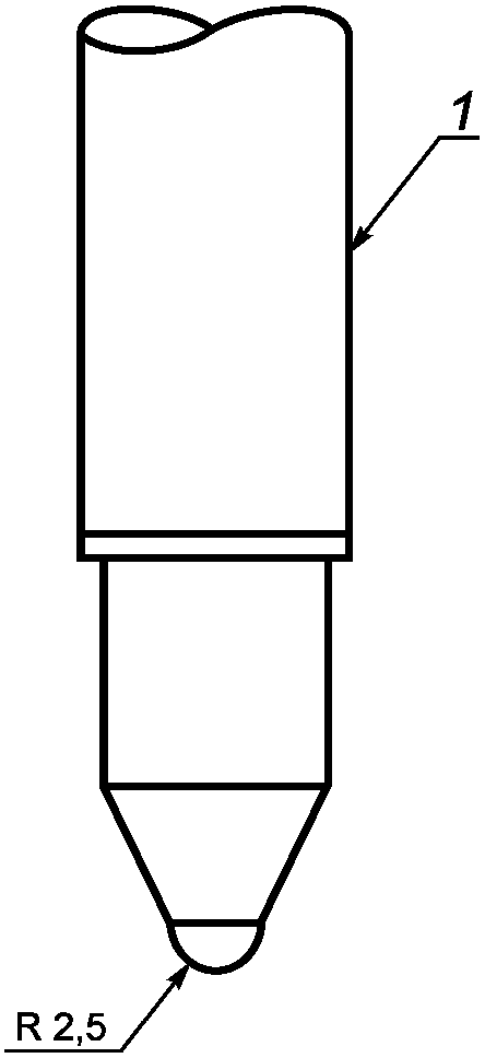 1 - сфера (шар); 2 - точка сферической части отпечатка;