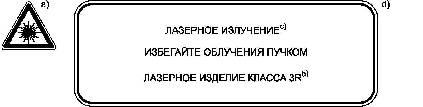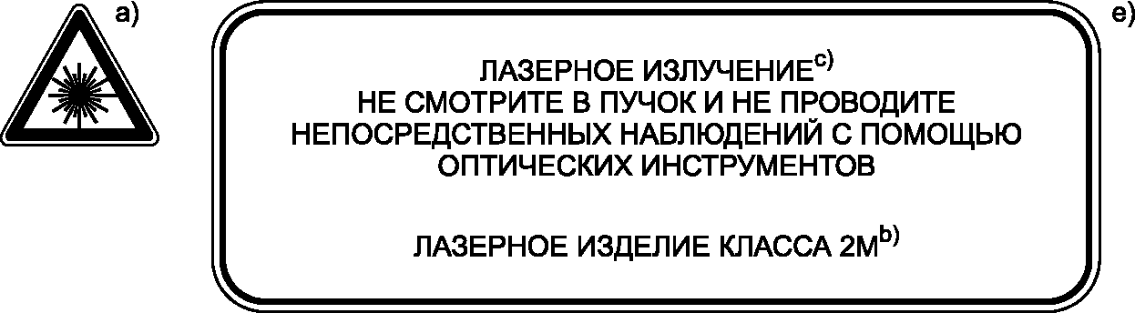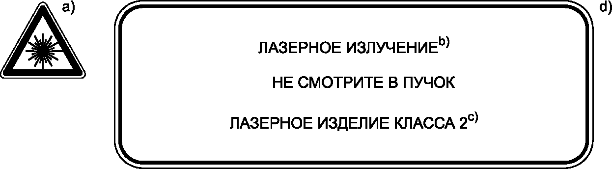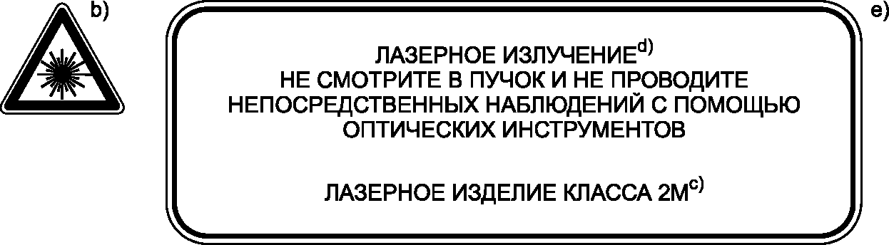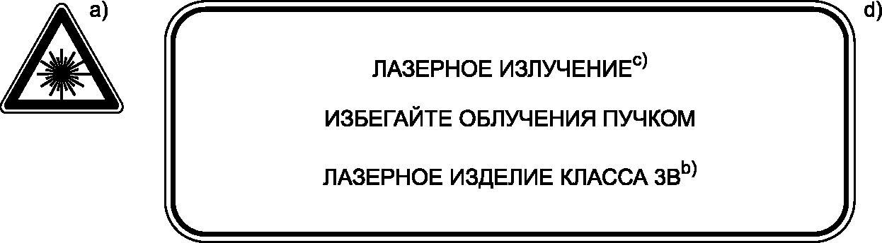 - предупреждающего символа согласно IEC 60825-1 (рисунок 14) и пояснительной надписи согласно IEC 60825-1 (рисунок 15), содержащей словосочетание "Уровень опасности 3B";