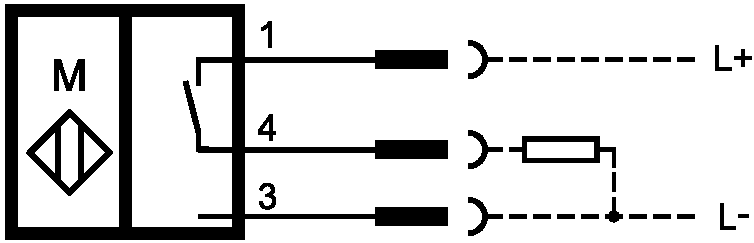 Светорассеивающий фотоэлектрический бесконтактный датчик 3-контактный на постоянном токе, вывод NPN, NO | Немеханический магнитный бесконтактный датчик 3-контактный на постоянном токе, вывод PNP, NO |