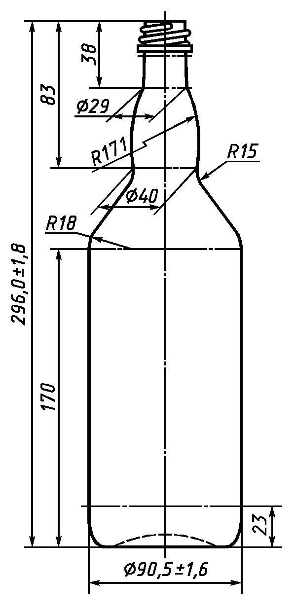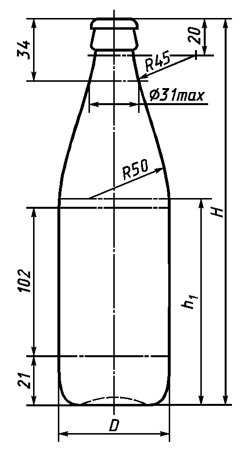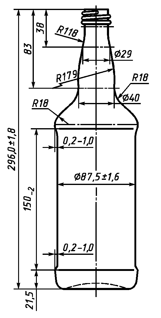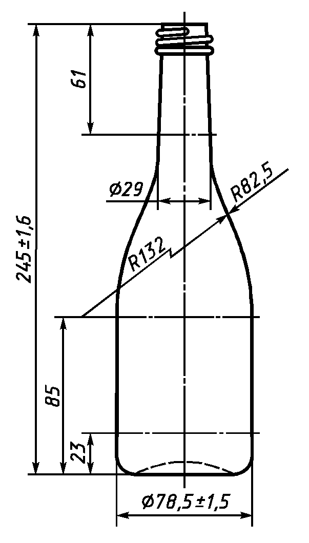 Бутылка типа XXI-В-28-1-500 ГОСТ 10117.2-2001
