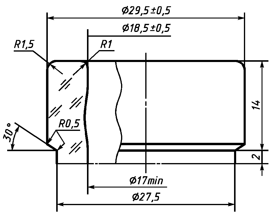 │В-30 │ 5 │ 5,3 │ 3,18 │ 1,05│ 2,1 │ 1,05│ 0,5 │ │ │ 2°7' │ │ │