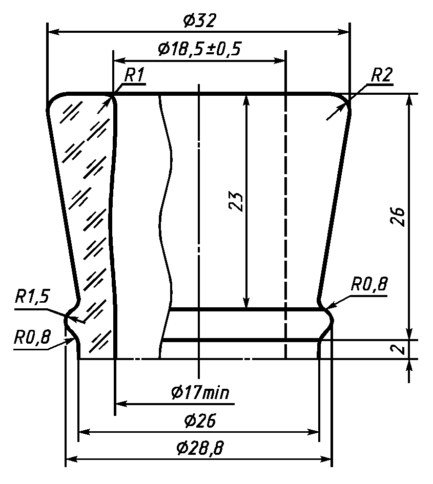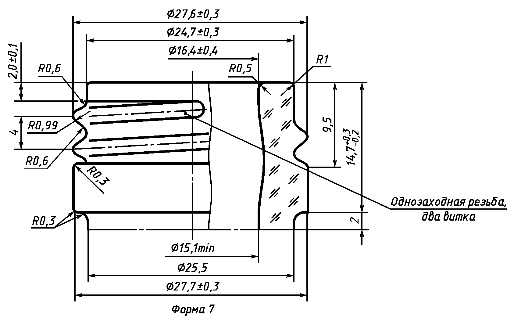 4.6. Диаметр укупорочного кольца венчика горловины типов КН (К), КПНв (КП), КПн, КПМ-30, КПМ-32, КПМ-36, А, наружный диаметр резьбы венчиков под винтовую укупорку и внутренний диаметр венчиков под пробку относят к обязательным требованиям.