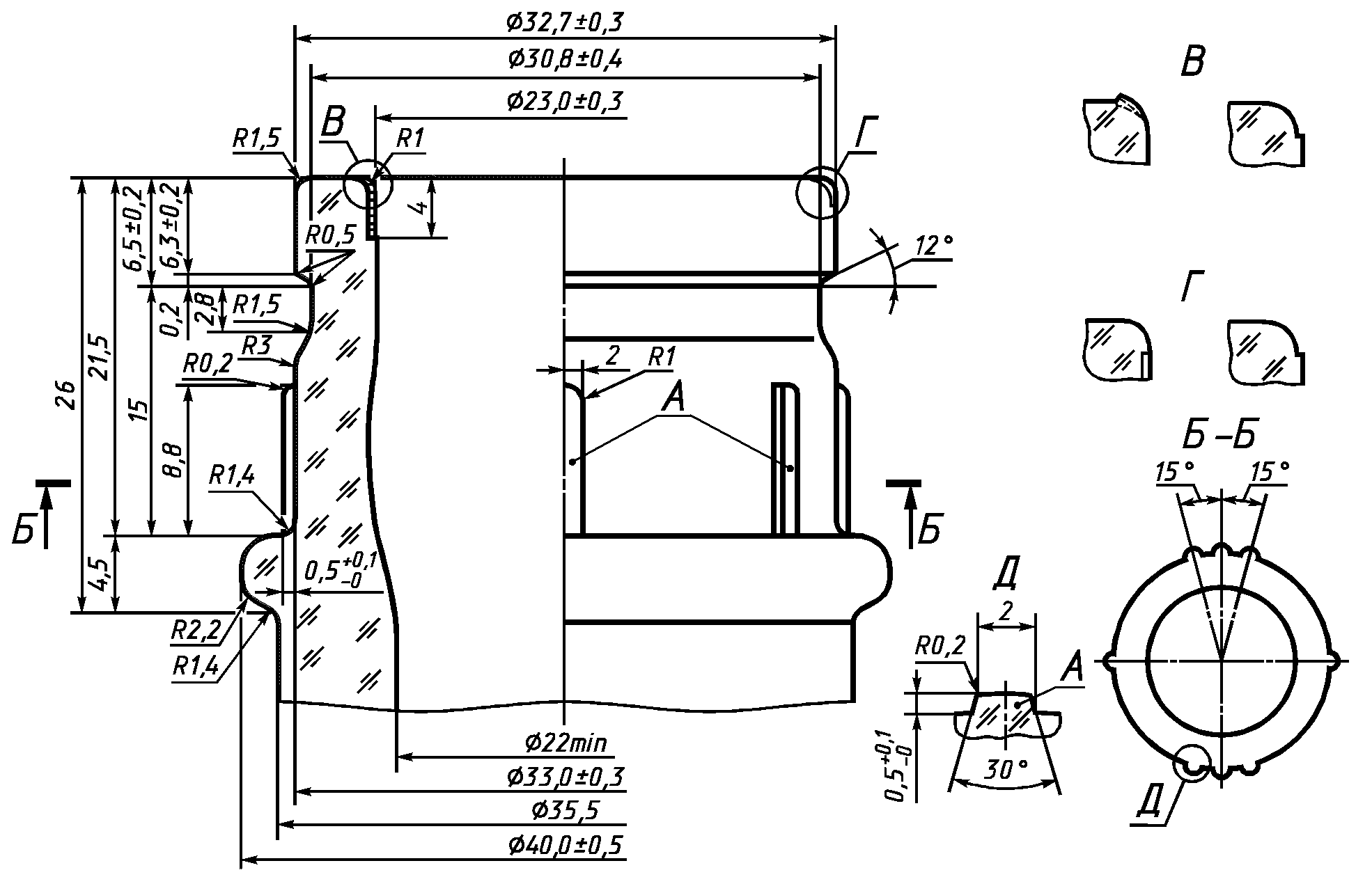 │В-22 │ 1 │ - │ │ │ │ │ │ │0,8 │ 2°15' │ │ 11 │