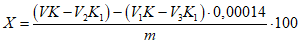 m - разность масс между опытными пробами S1 и S2, г.