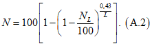 N - коэффициент ослабления светового потока по вспомогательной шкале дымомера с эффективной базой, равной 0,43 м, %.