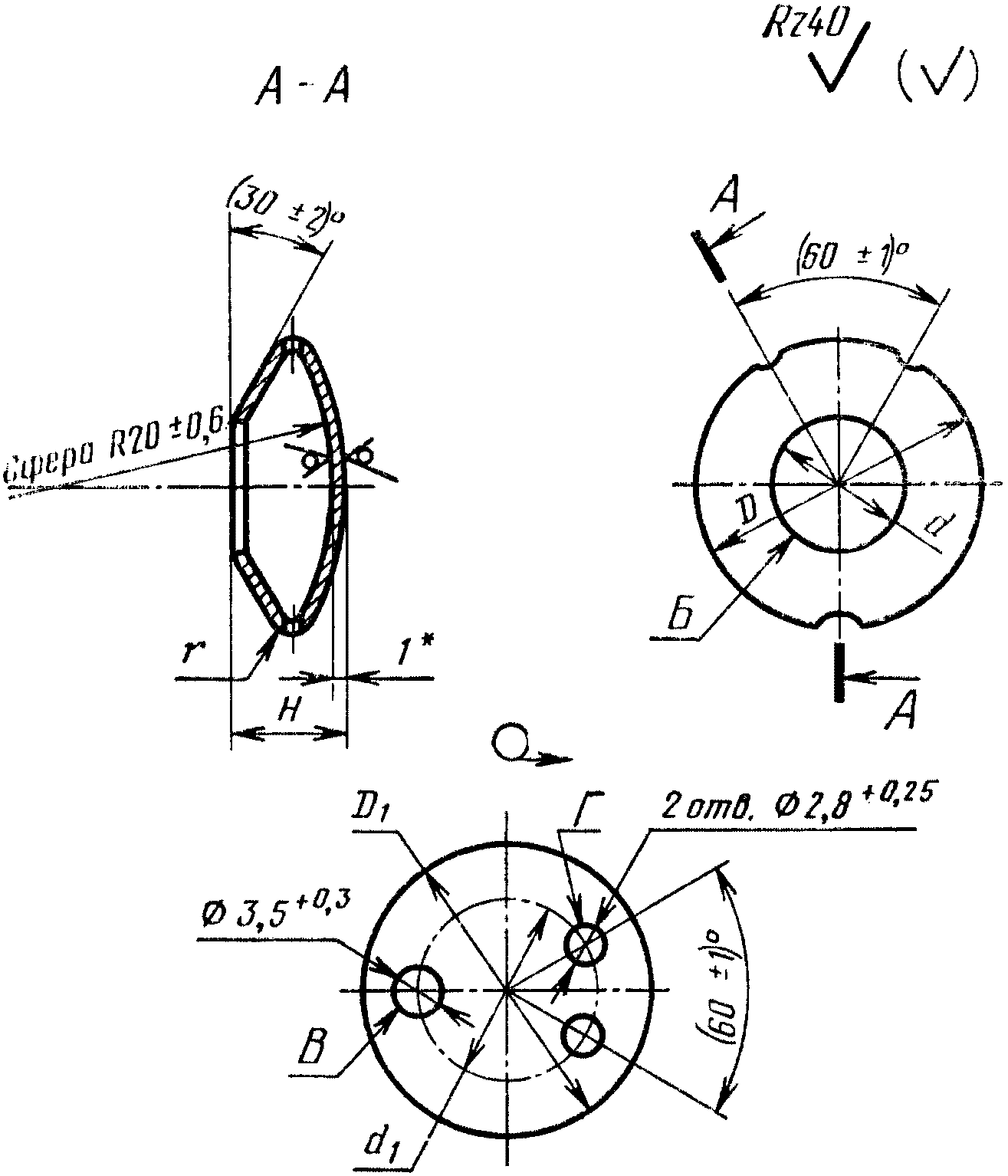 D +0,7 | Применяемость | D1 | D2 -0,43 | D3 -0,52 | r +/- 0,5 | A +/- 0,6 | A1 | H | b -0,48 | Масса 1000 шт., кг ~= |