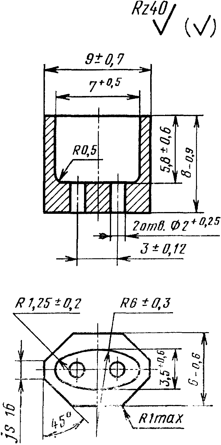 1. Допускается огранка отверстия Б, образующаяся при штамповке.