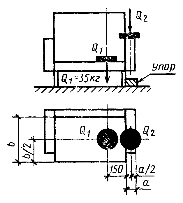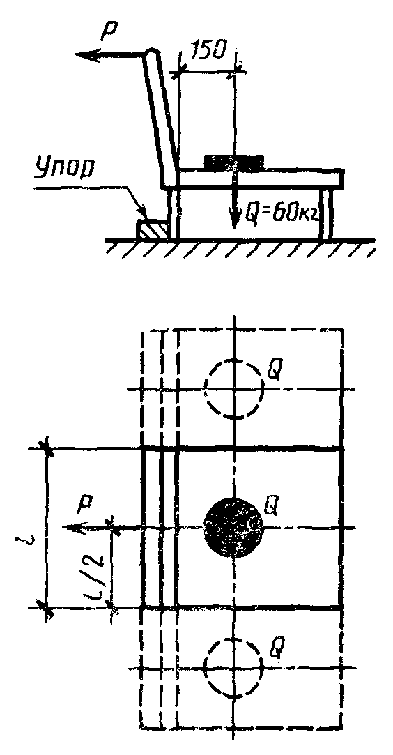 На сиденье кресла-качалки устанавливают балластный груз Q массой (75,0 +/- 0,7) кг.