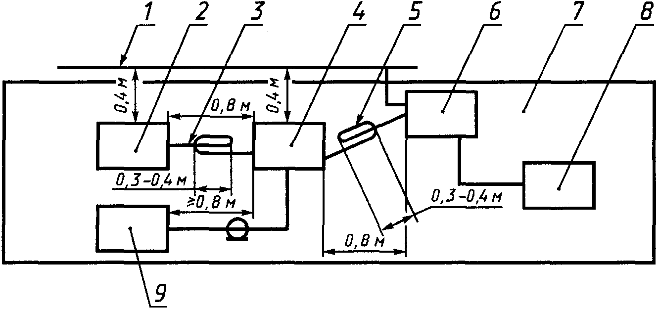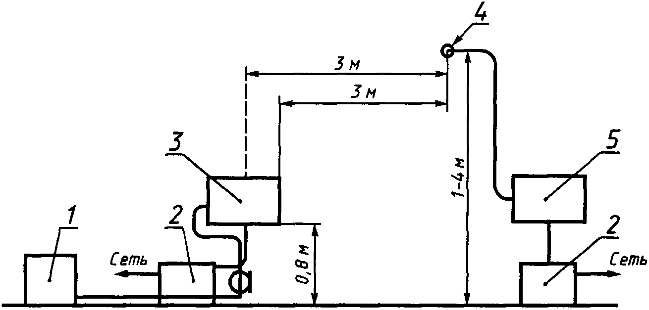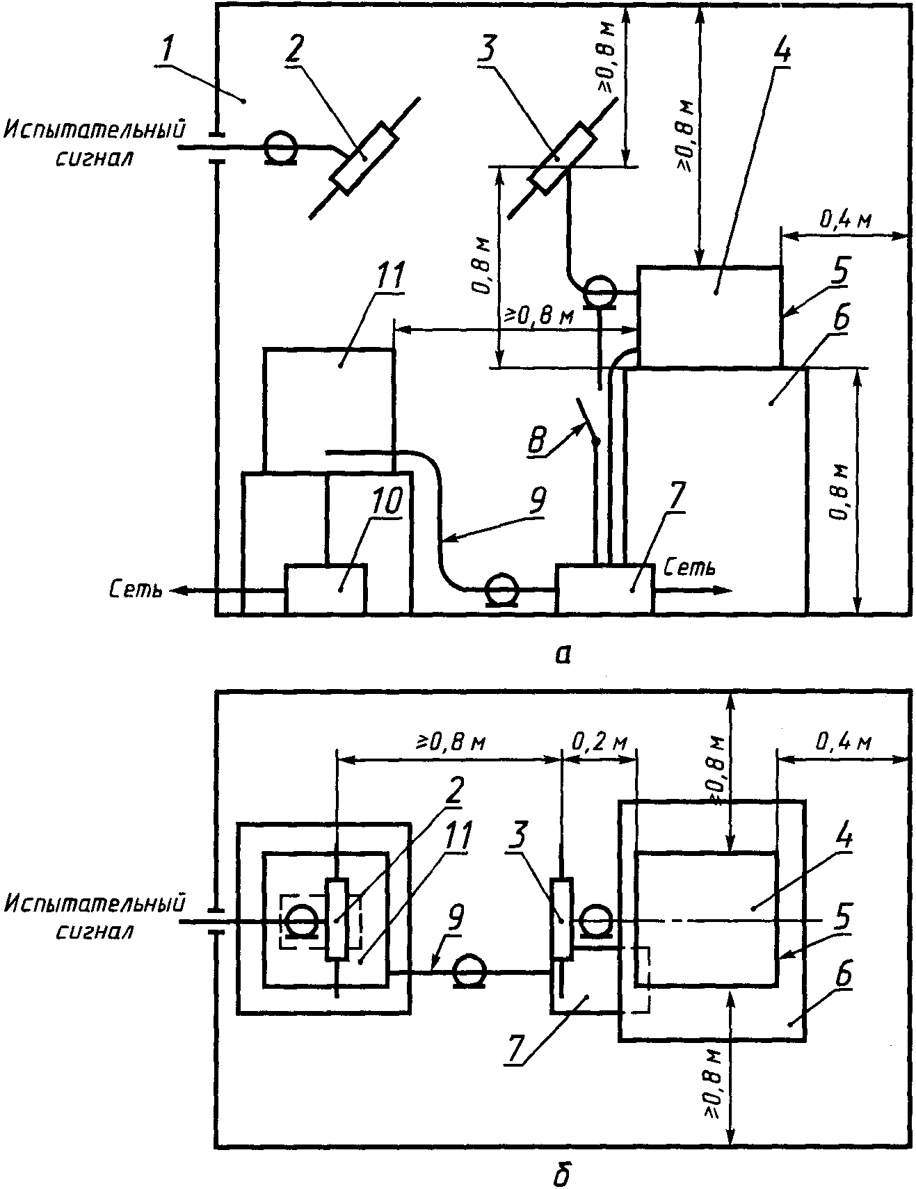 6.7.2. Расположение испытуемого устройства, измерительной аппаратуры и вспомогательного оборудования при измерении мощности радиопомех приведено на рисунке 7.