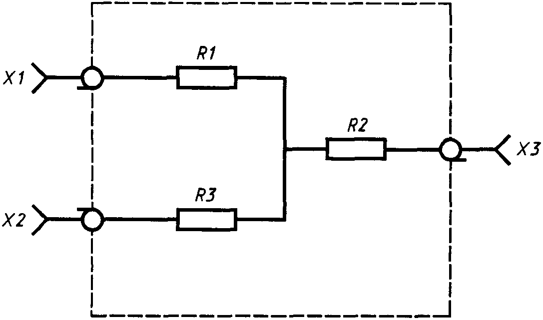 с волновым сопротивлением 75 Ом; R1, R2, R3 - резисторы
