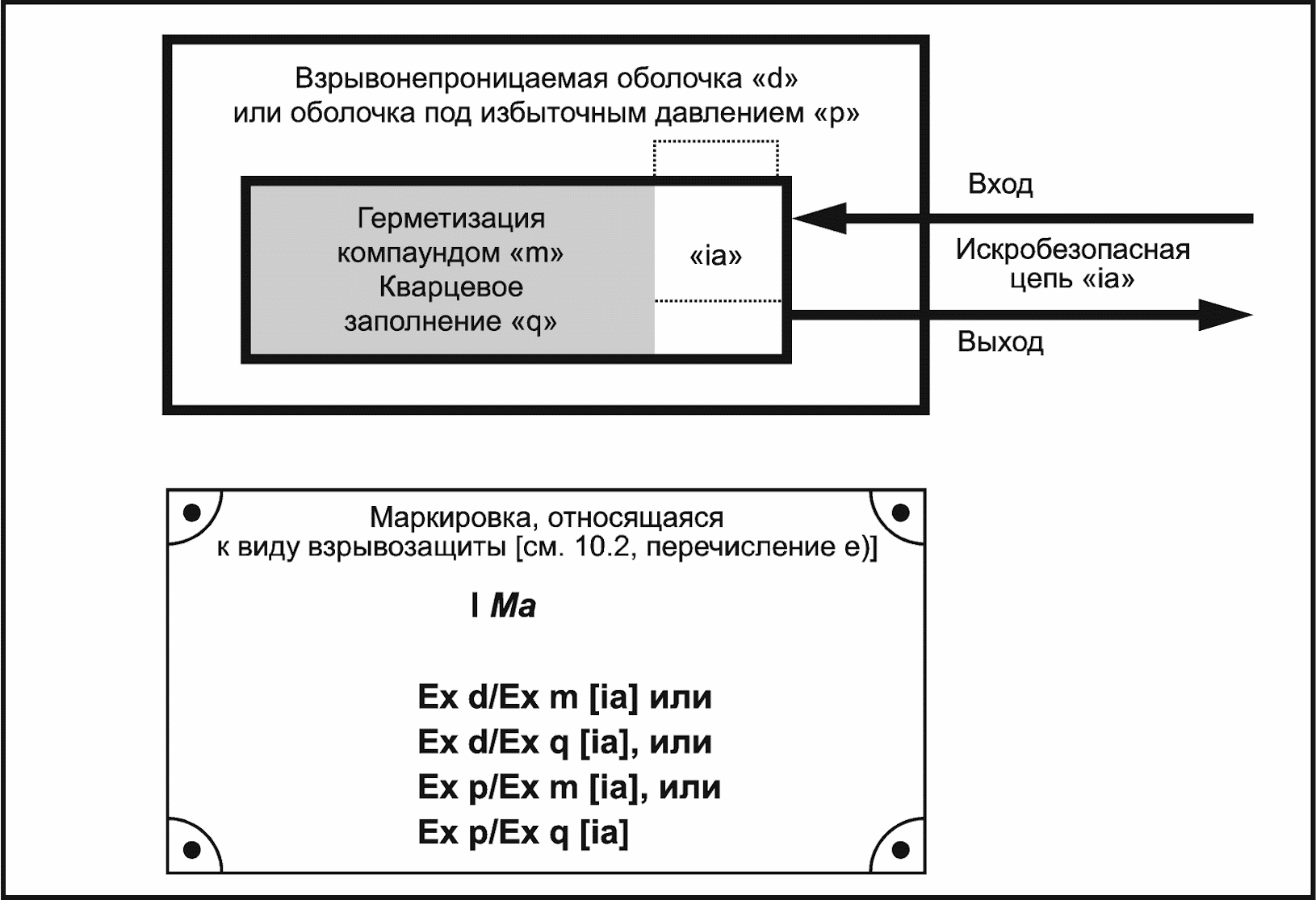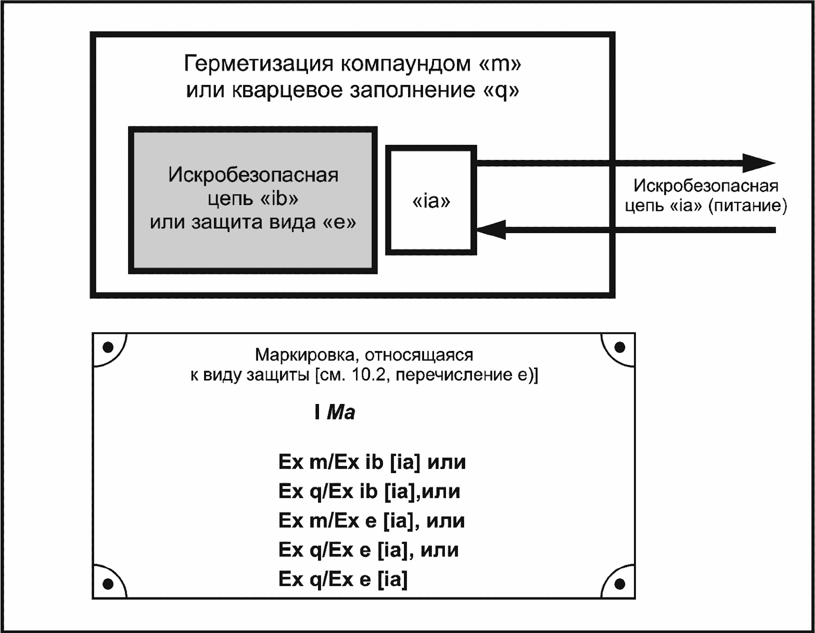 уровня взрывозащиты Ma с использованием комбинации не менее двух видов защиты, как описано в