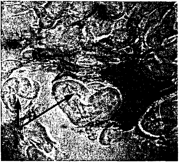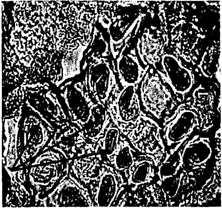 соевый концентрат - частицы состоят из клеток цилиндрических (продольный срез) или округлых (поперечный срез), окруженных узким ровным неокрашиваемым просветом - целлюлозной оболочкой;