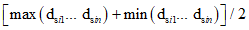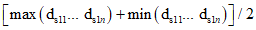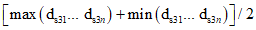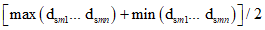 Средний диаметр отдельной детали получают как среднеарифметическое значение наибольшего из максимальных и наименьшего из минимальных значений всех единичных диаметров отверстия, полученного для конкретной детали, как показано в уравнении (А.1).