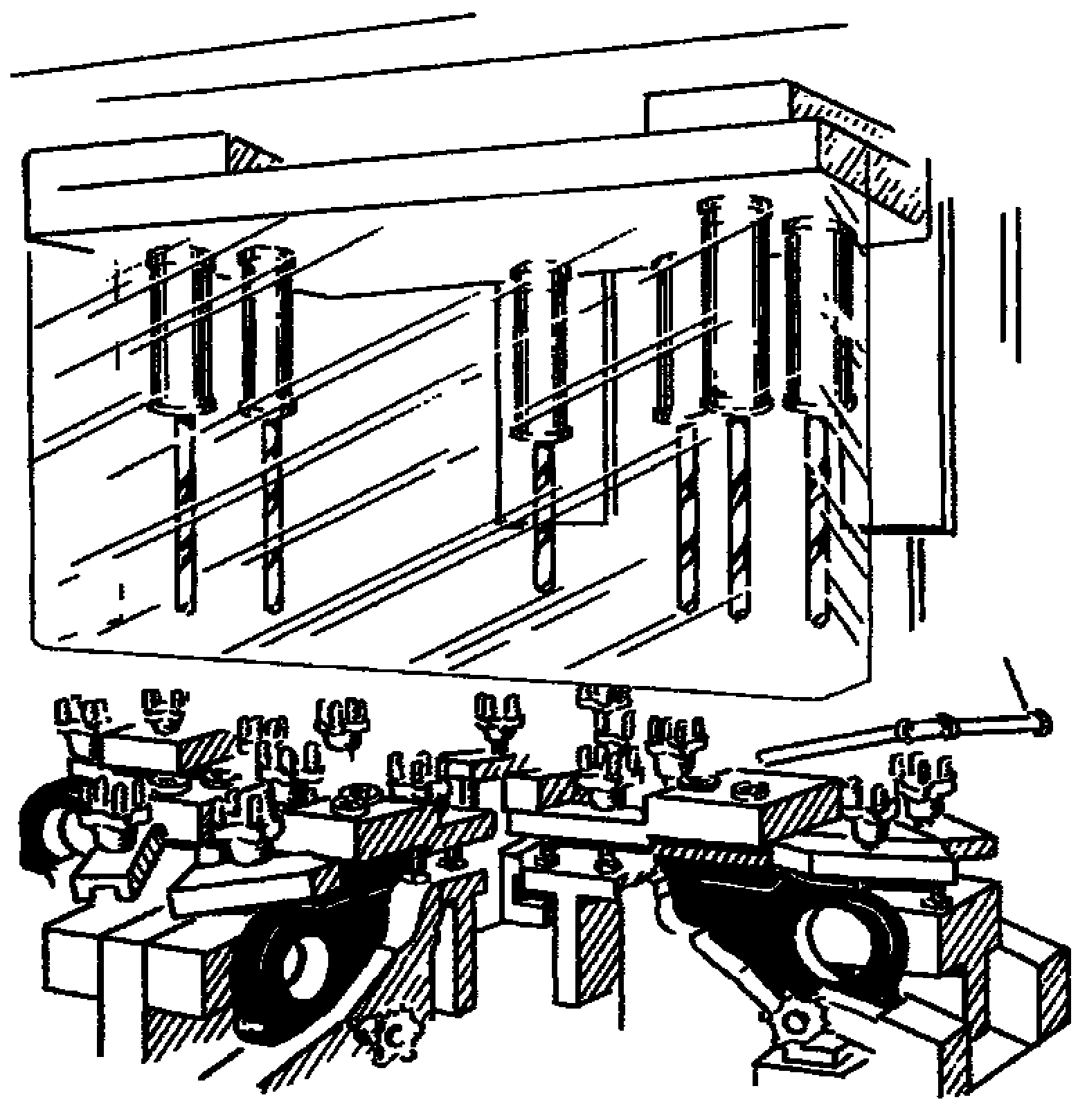18. Потеря устойчивости, опрокидывание машины | Незакрепленные станок или детали станка, удерживаемые в своем положении только силой тяжести | Загрузка/разгрузка тяжелых (громоздких) обрабатываемых деталей, техническое обслуживание (разборка/переустановка) | На станке | |