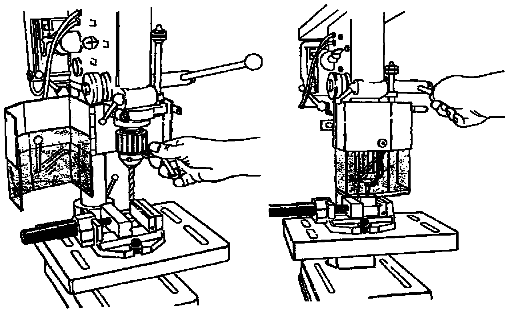 Примечание. Для всех сверлильных станков с ручным управлением опасность придавливания обычно рассматривается как незначительная. | ||