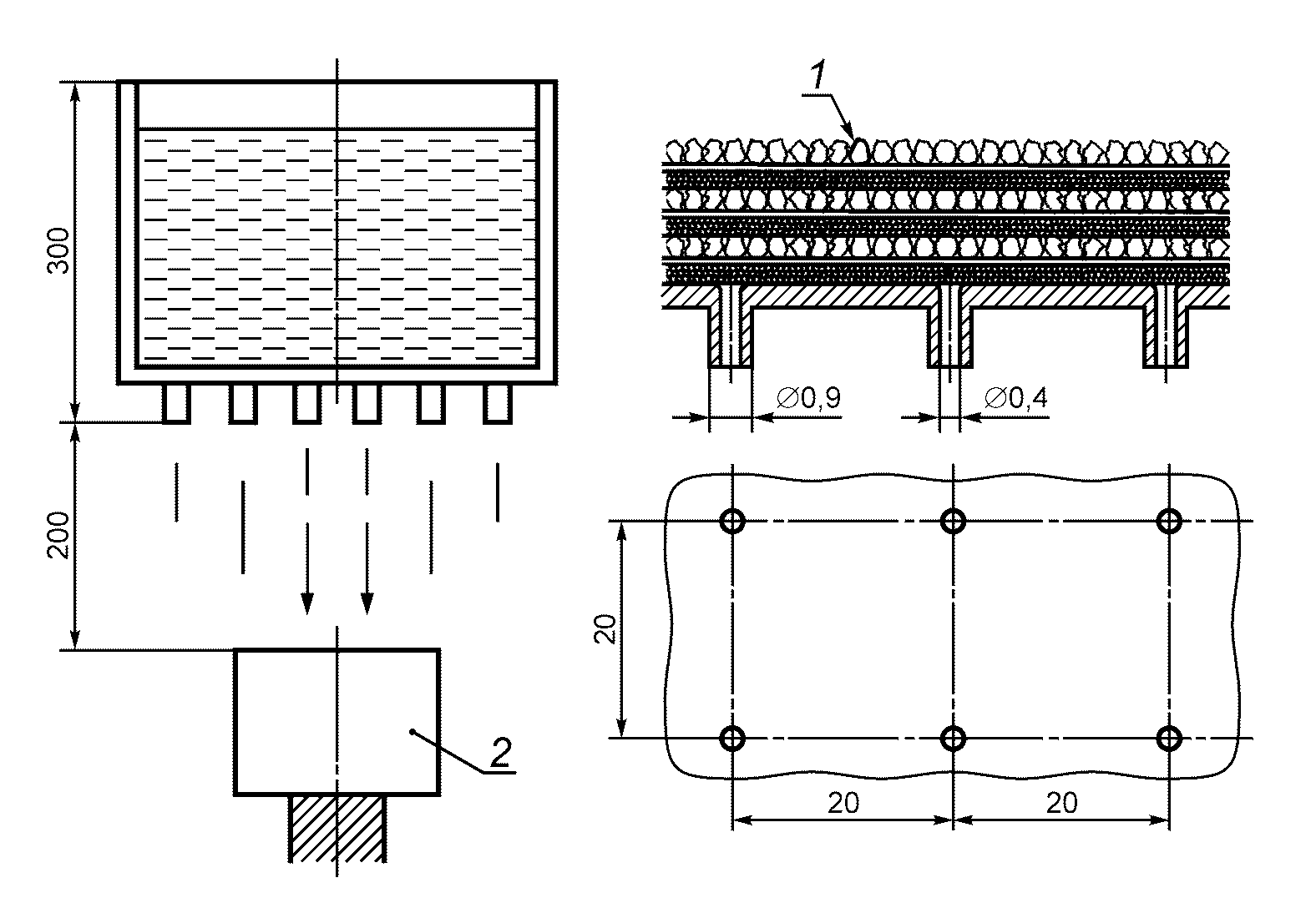 1 - отверстия диаметром 0,4 мм (показаны отверстия